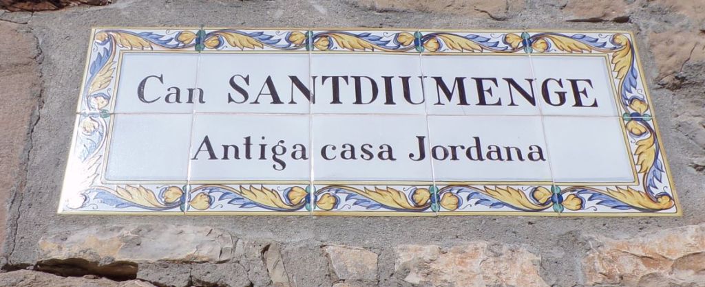 Sortim per la part que dona a la placeta on he començat fent les fotos. Em fixo en l’antic nom de la casa «Jordana», l’etimologia d’aquest nom remet al riu Jordà i a Sant Jordi, no en sé res més d’aquest topònim del lloc, potser algun dia ho investigaré.